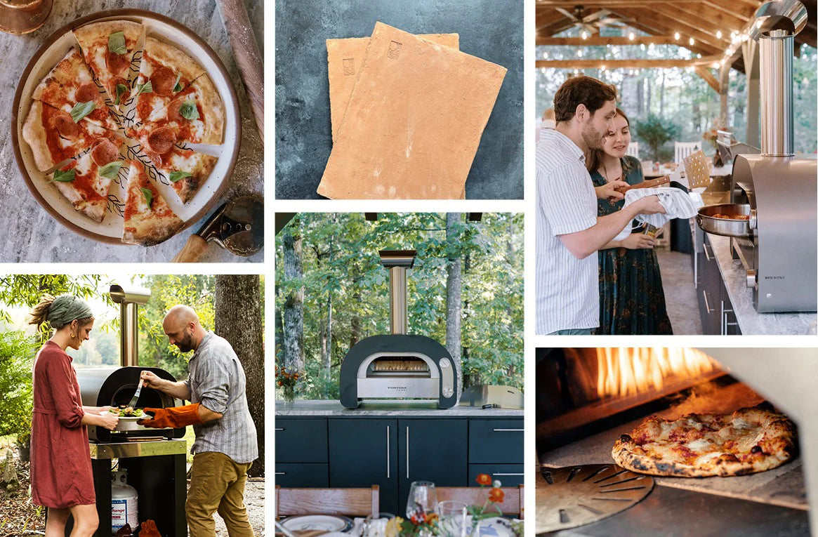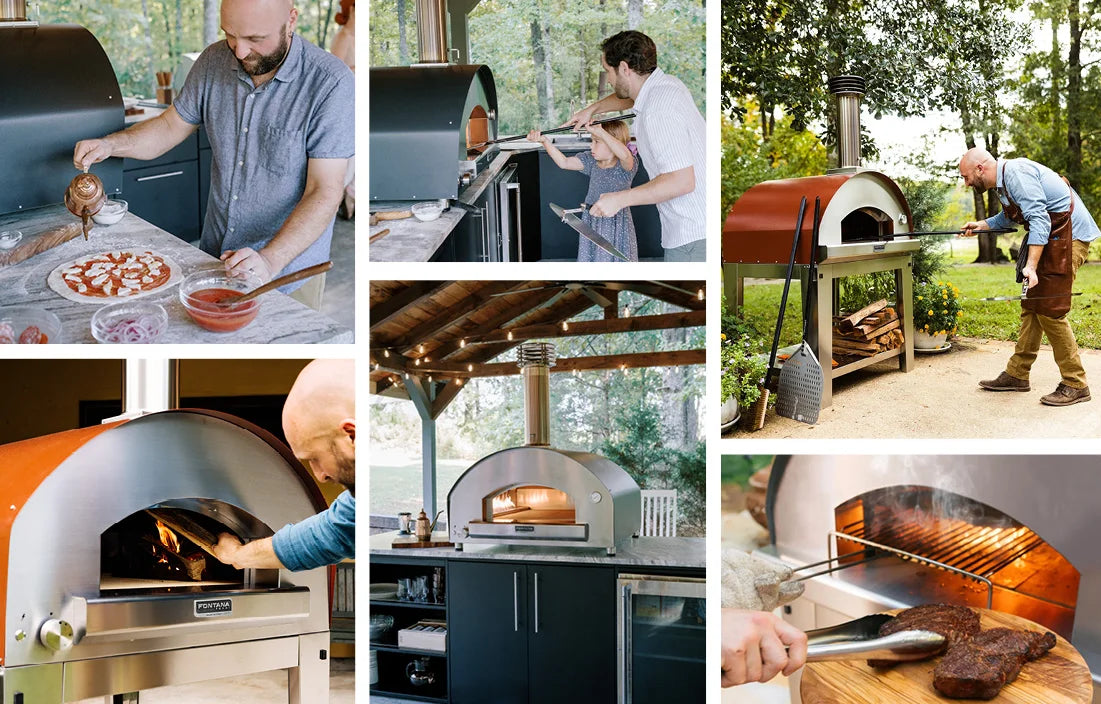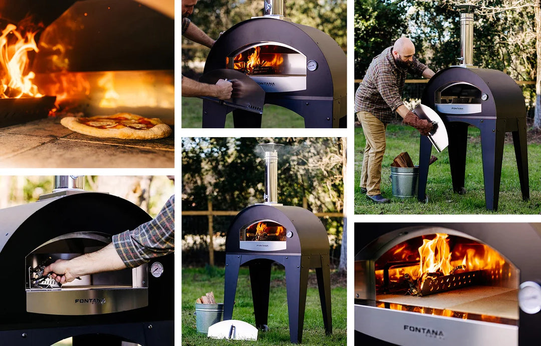 Our Forno Toscano line of outdoor wood-fired pizza ovens—the Margherita, the Mangiafuoco, and the Marinara—heat up to cooking temperature within 30 minutes. Our wood-fired pizza ovens are both fuel efficient and portable. In nearly the same amount of time it takes to preheat, prepare, and cook a pizza using an indoor oven, you can experience authentic Italian-style brick oven pizza cooked in a Fontana oven right in your own backyard.