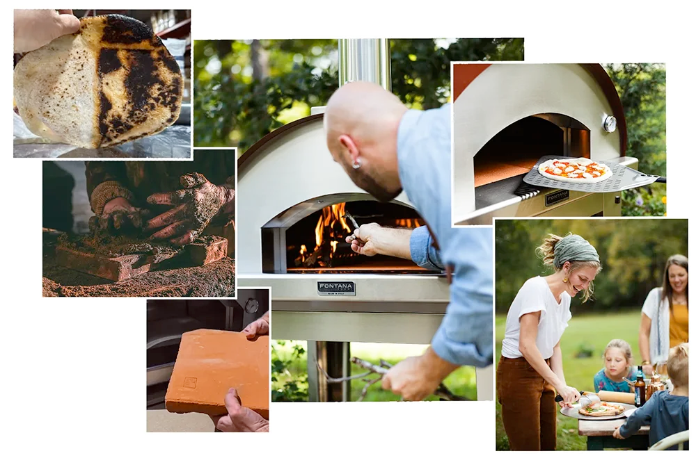 Our Forno Toscano line of outdoor wood-fired pizza ovens—the Margherita, the Mangiafuoco, and the Marinara—heat up to cooking temperature within 30 minutes. Our wood-fired pizza ovens are both fuel efficient and portable. In nearly the same amount of time it takes to preheat, prepare, and cook a pizza using an indoor oven, you can experience authentic Italian-style brick oven pizza cooked in a Fontana oven right in your own backyard.