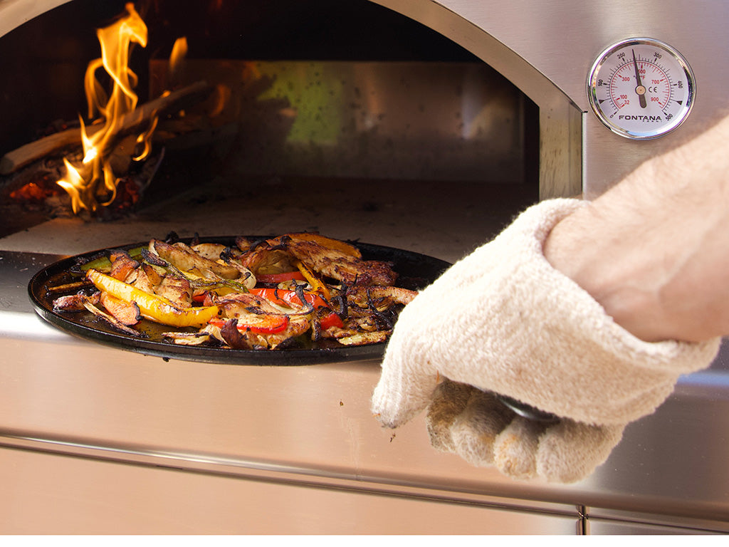 The throw-together quality of chicken fajitas makes the meat dish so popular. While you will find the usual suspects here, including avocado, bell pepper, and onions, we threw in cumin to infuse the olive oil’s flavor, plus ground smoked habanero, one of the hottest spices available. Cooked in our Margherita wood-fired oven, the combination of all these ingredients makes these fajitas muy caliente!