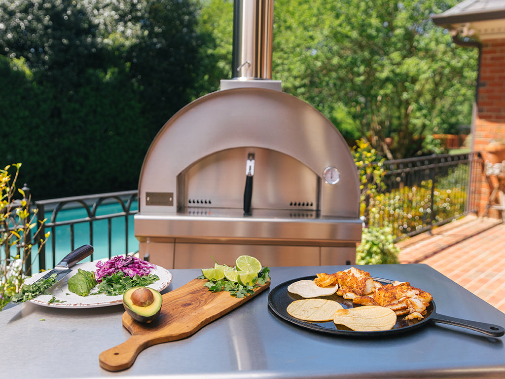 Once the fish is fully cooked, place the corn tortillas onto the stones of your oven for just a few seconds to warm them up.