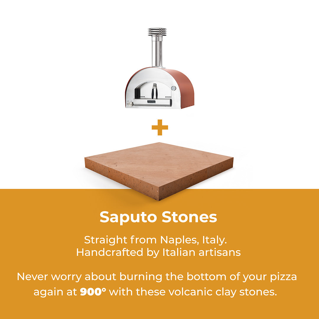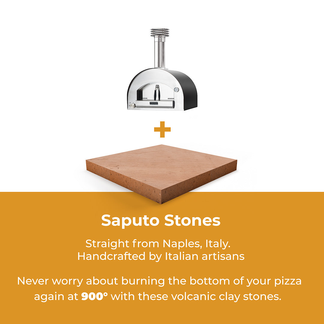 • Optimal Heat Retention: Specially designed for consistent and even heat distribution, Saputo stones ensure perfectly cooked pizzas at 850°F for 60-90 seconds without burning the bottom.
